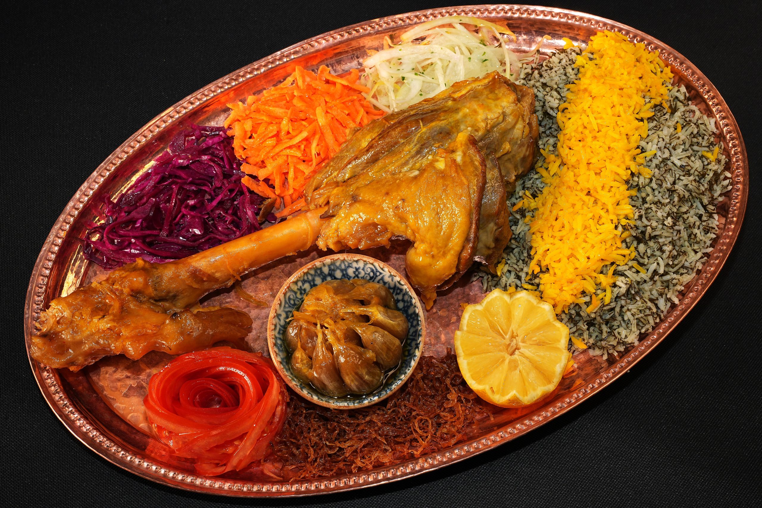 Lamb chops (6 pieces) + Special Mixed meat kebab (pounded veal and lamb, 2 big portions) + Chicken fillet kebab (1 portion) +Bone-in chicken kebab (1 portion) +Special Iranian butter chicken (1 portion) +Mutton neck with caramelized onions with aromatic sauce (1 portion) + Gheymeh stew + Ghormesabzi (aromatic meat and vegetables stew) + Saffron rice (5 portions) + Side dish (pomegranate sauce, pepper, onions and parsley, lemon, etc.)